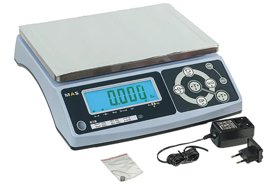 Весы простого взвешивания MAS MS Порционные весы серии MAS MS представляют собой профессиональное оборудование для точного взвешивания и дозирования ингредиентов. Эти весы находят широкое применение на кухнях ресторанов и пекарен, в цехах пищевого производства, на почте, складах, рынках и в магазинах, где важна скорость и точность измерений при работе с различными продуктами. Конструкция весов отличается прочностью и удобством. Платформа весов изготовлена из нержавеющей стали, что обеспечивает долговечность и гигиеничность при частом контакте с пищевыми продуктами. Весы оснащены ярким жидкокристаллическим дисплеем с высотой символов 30 миллиметров и светодиодной подсветкой с автоматической регулировкой яркости. Влагостойкая мембранная клавиатура защищает электронные компоненты от попадания влаги и загрязнений. Ключевой особенностью весов является высокая скорость взвешивания и быстрый отклик системы, что ускоряет рабочие процессы на кухне или производстве. Продолжительность автономной работы от встроенного аккумулятора достигает 120 часов, обеспечивая мобильность и независимость от стационарных источников питания. Функциональные возможности весов включают счетный режим, функцию дозирования с индикацией состояния (Hi-Ok-Lo), переключение между чистым и полным весом (Net/Gross), автоматическую установку нуля при включении и возможность вычитания массы тары до 100% от максимальной нагрузки. Наличие интерфейса RS-232 позволяет подключать весы к периферийному оборудованию и системам учета. Модель MAS MS сочетает в себе точность измерений, интуитивное управление и универсальность применения. Небольшие габаритные размеры и малый вес позволяют легко размещать весы на рабочих столах и перемещать их при необходимости. Сочетание надежности, функциональности и доступной цены делает эти весы оптимальным выбором для предприятий общественного питания и пищевой промышленности. Фасовочные весы MAS MS-30 — это мощная модель с пределом взвешивания 3000 г (3 кг) и точностью 1 г, предназначенная для тяжелых условий: фасовки замороженных продуктов, овощей, крупных деталей и промышленных материалов. Прочный металлический корпус, защита от перегрузок и возможность работы в широком температурном диапазоне делают весы пригодными для использования в холодильных камерах и цехах. Функции предустановки веса, звуковой индикации и подключения к внешним устройствам ускоряют процесс массовой фасовки.