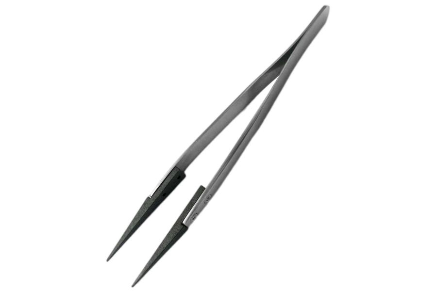 Пинцет метрологический металлический (12,5 см) с пластиковым наконечником